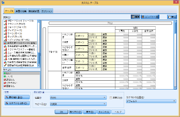 多次元でのクロステーブルや入れ子のような複雑な設定を容易に