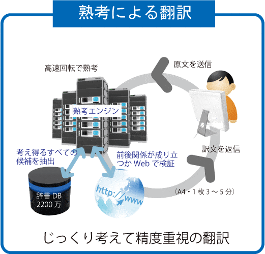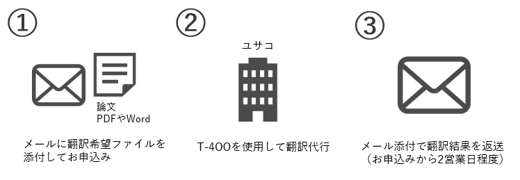 「T-4OO」での翻訳は、高精度翻訳を実現するために、一定の時間が必要です(A4原稿1枚に、およそ3-5分)