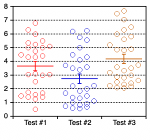 統計手法は、記述統計をはじめ、Student t-検定、ANOVA、多重比較、反復測定分散分析、Wilcoxon、Kruskal Wallis 等が備わっています。数式入力ウィンドウを使用することで、100を超える代数方程式や統計関数を使ったデータ操作が可能です。